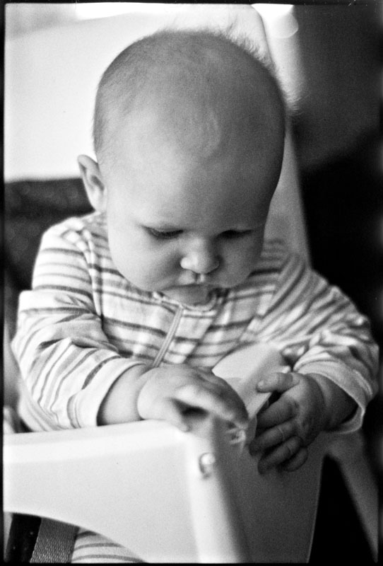 Here are a couple of documentary portraits from a couple years ago on Christmas day. I like the fact that they include the Christmas tree, but it is subtle and out of focus in the background. I also really like the tones and grain visible in these film scans. As usual, these were shot with available light, in the natural surroundings. Just a couple of quick snaps after the kids had opened their presents. It doesn’t take a lot of time to get great shots. Simply pay attention to the light, the situation, and expressions and be ready with the camera. That is the fun, and the challenge, of documentary portraiture.